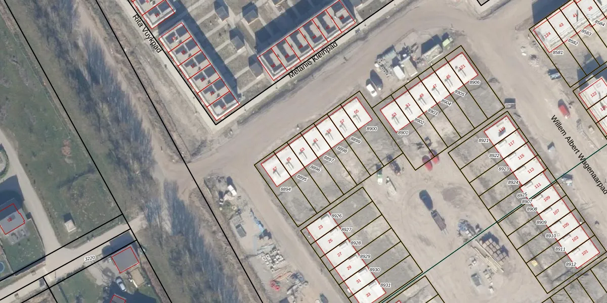 Het perceel waarop het adres ligt is AMR04-C-8896. De afkorting 'AMR04' staat voor kadastrale gemeente Almere. De gemiddelde perceelgrootte in Almere is 3328,15 m². Dit perceel is kleiner: de perceeloppervlakte bedraagt 135 m². Het grootste perceel in de kadastrale gemeente is 32,12 km². Het kleinste perceel heeft een oppervlakte van 0 m². Dit is het enige adres dat aanwezig is op het perceel. In de Basisregistratie Kadaster (BRK) werden de grenzen van het perceel geregistreerd op 28-06-2024.