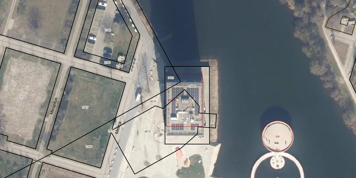 Het adres ligt op het perceel AMR04-K-7606, dat zich in de kadastrale gemeente Almere bevindt. Het perceel is 412 m² groot. Dat is kleiner dan de gemiddelde perceeloppervlakte in Almere, dat op 3328,15 m² ligt. Het grootste perceel in de kadastrale gemeente is 32,12 km². Het kleinste perceel heeft een oppervlakte van 0 m². Er zijn 21 adressen aanwezig op het perceel. In de Basisregistratie Kadaster (BRK) werden de grenzen van het perceel geregistreerd op 13-06-2025.