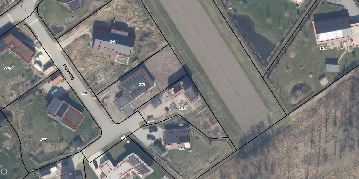 Het perceel waarop Melkweg 15 staat heeft een oppervlakte van 803 m². Dit is een groot perceel. De perceeloppervlakte wordt geregistreerd door het Kadaster. Gedetailleerde informatie over de maten van dit perceel kunt u vinden in het rapport Kadastrale kaart met maatvoering van Melkweg 15.