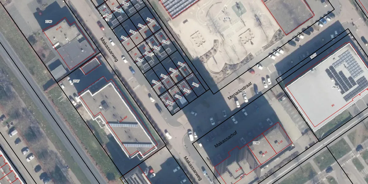 Gebruik de zoekbalk of klik op een perceel voor informatie over de adressen binnen dit perceel.