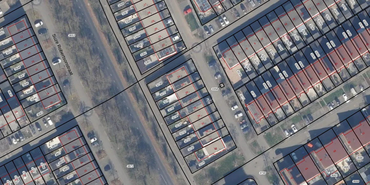 Het adres ligt op het perceel AMR04-P-3236, dat zich in de kadastrale gemeente Almere bevindt. De gemiddelde perceelgrootte in Almere is 3328,15 m². Dit perceel is kleiner: de perceeloppervlakte bedraagt 134 m². De grootste perceeloppervlakte in de kadastrale gemeente is 32,12 km². De kleinste oppervlakte bedraagt 0 m². Dit is het enige adres dat aanwezig is op het perceel. De huidige grenzen van het perceel zijn digitaal in de Basisregistratie Kadaster (BRK) geregistreerd op 28-09-2000.