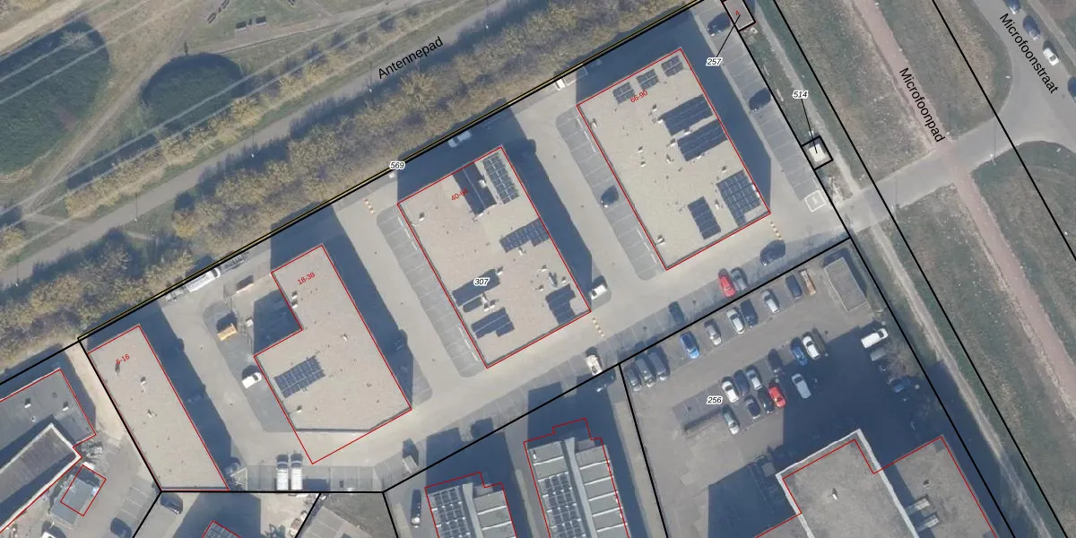Het perceel waarop Microfoonstraat 52 staat heeft een oppervlakte van 6638 m². Dit is een zeer groot perceel. De perceeloppervlakte wordt geregistreerd door het Kadaster. Gedetailleerde informatie over de maten van dit perceel kunt u vinden in het rapport Kadastrale kaart met maatvoering van Microfoonstraat 52.