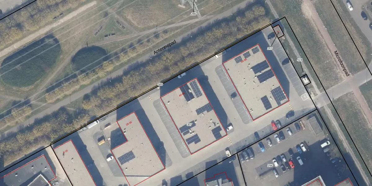 Het perceel waarop Microfoonstraat 60 staat heeft een oppervlakte van 6638 m². Dit is een zeer groot perceel. De perceeloppervlakte wordt geregistreerd door het Kadaster. Gedetailleerde informatie over de maten van dit perceel kunt u vinden in het rapport Kadastrale kaart met maatvoering van Microfoonstraat 60.