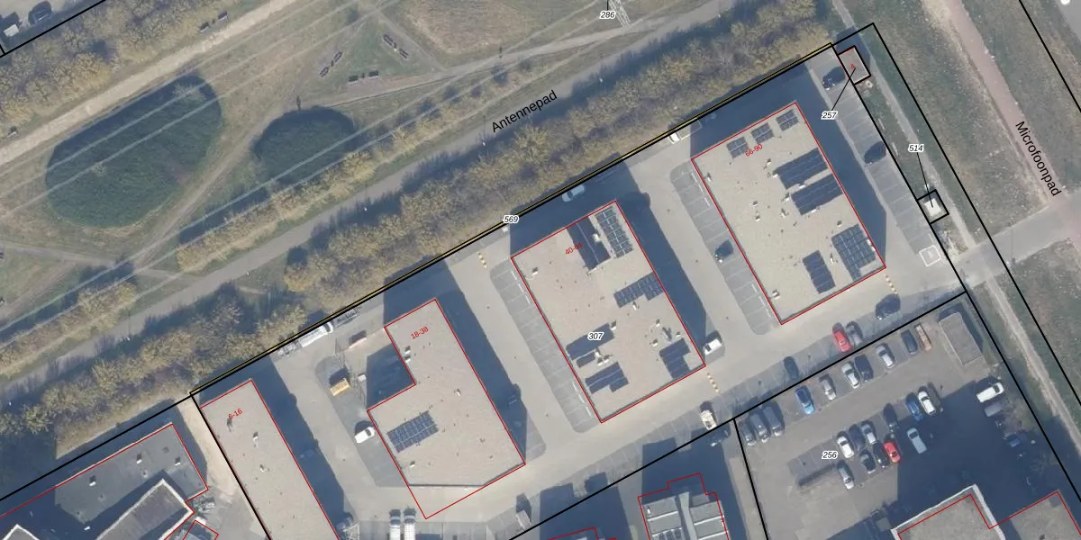 Het perceel waarop Microfoonstraat 64 staat heeft een oppervlakte van 6638 m². Dit is een zeer groot perceel. De perceeloppervlakte wordt geregistreerd door het Kadaster. Gedetailleerde informatie over de maten van dit perceel kunt u vinden in het rapport Kadastrale kaart met maatvoering van Microfoonstraat 64.