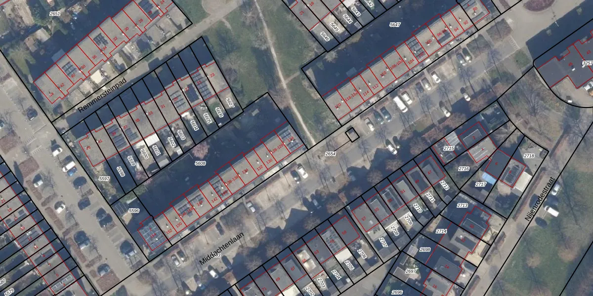 Middachtenlaan 124 is gelegen op kadastraal perceel AMR04N5608. Deze kadastrale aanduiding is uniek en wordt gebruikt door het Kadaster om eigendomsrechten en andere zakelijke rechten vast te leggen. Het perceel maakt onderdeel uit van de kadastrale gemeente Almere.