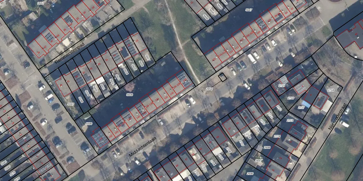 Middachtenlaan 126 is gelegen op kadastraal perceel AMR04N5608. Deze kadastrale aanduiding is uniek en wordt gebruikt door het Kadaster om eigendomsrechten en andere zakelijke rechten vast te leggen. Het perceel maakt onderdeel uit van de kadastrale gemeente Almere.