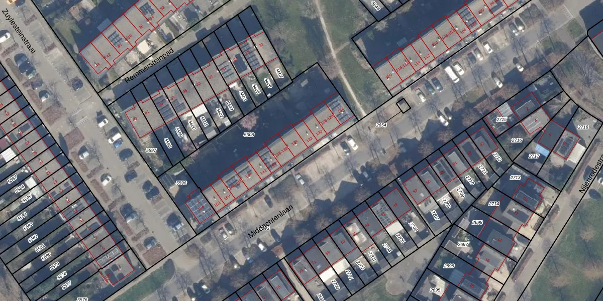 Middachtenlaan 134 is gelegen op kadastraal perceel AMR04N5608. Deze kadastrale aanduiding is uniek en wordt gebruikt door het Kadaster om eigendomsrechten en andere zakelijke rechten vast te leggen. Het perceel maakt onderdeel uit van de kadastrale gemeente Almere.