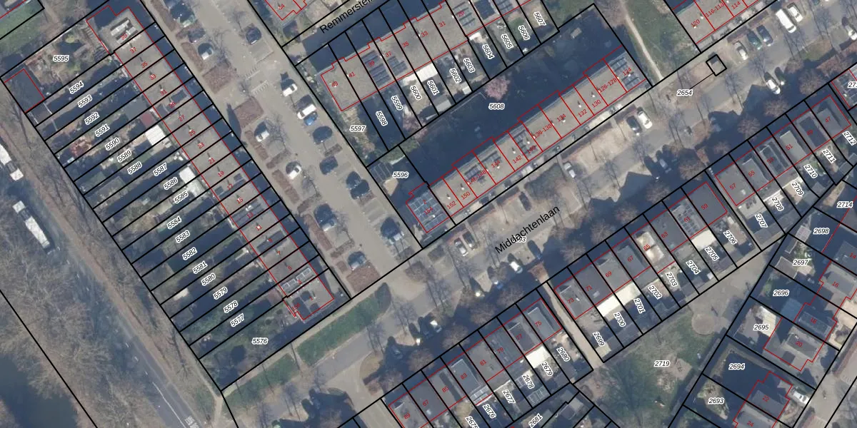 Middachtenlaan 154 is gelegen op kadastraal perceel AMR04N5596. Deze kadastrale aanduiding is uniek en wordt gebruikt door het Kadaster om eigendomsrechten en andere zakelijke rechten vast te leggen. Het perceel maakt onderdeel uit van de kadastrale gemeente Almere.