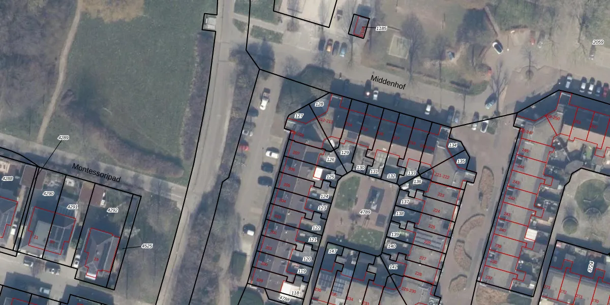 Het perceel waarop Middenhof 207 staat heeft een oppervlakte van 109 m². Dit is een middelgroot perceel. De perceeloppervlakte wordt geregistreerd door het Kadaster. Gedetailleerde informatie over de maten van dit perceel kunt u vinden in het rapport Kadastrale kaart met maatvoering van Middenhof 207.