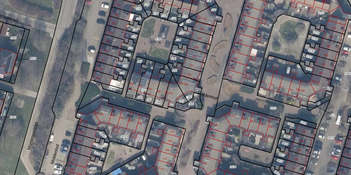 Het perceel waarop Middenhof 232 staat heeft een oppervlakte van 138 m². Dit is een middelgroot perceel. De perceeloppervlakte wordt geregistreerd door het Kadaster. Gedetailleerde informatie over de maten van dit perceel kunt u vinden in het rapport Kadastrale kaart met maatvoering van Middenhof 232.