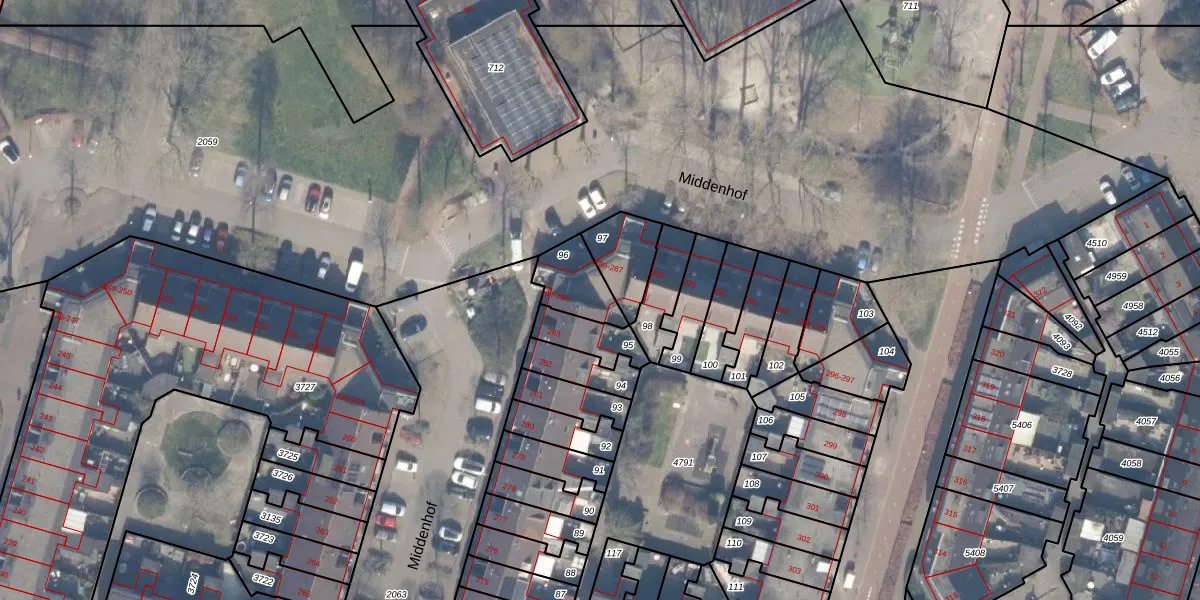 Het perceel waarop Middenhof 284 staat heeft een oppervlakte van 137 m². Dit is een middelgroot perceel. De perceeloppervlakte wordt geregistreerd door het Kadaster. Gedetailleerde informatie over de maten van dit perceel kunt u vinden in het rapport Kadastrale kaart met maatvoering van Middenhof 284.