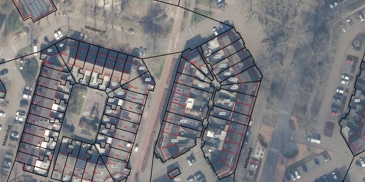 Het perceel waarop Middenhof 319 staat heeft een oppervlakte van 360 m². Dit is een groot perceel. De perceeloppervlakte wordt geregistreerd door het Kadaster. Gedetailleerde informatie over de maten van dit perceel kunt u vinden in het rapport Kadastrale kaart met maatvoering van Middenhof 319.
