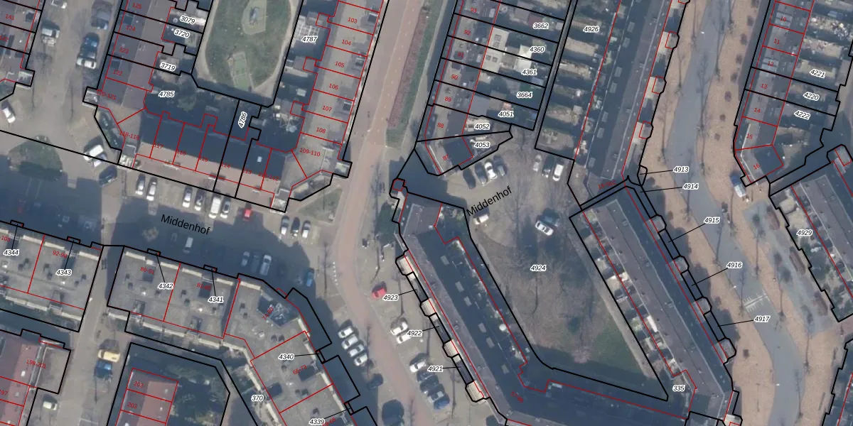Het perceel waarop Middenhof 85 staat heeft een oppervlakte van 2471 m². Dit is een zeer groot perceel. De perceeloppervlakte wordt geregistreerd door het Kadaster. Gedetailleerde informatie over de maten van dit perceel kunt u vinden in het rapport Kadastrale kaart met maatvoering van Middenhof 85.
