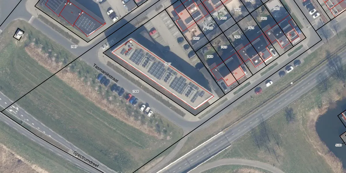 Het adres ligt op het perceel AMR04-B-7907, dat zich in de kadastrale gemeente Almere bevindt. De gemiddelde perceelgrootte in Almere is 3327,75 m². Dit perceel is kleiner: de perceeloppervlakte bedraagt 1962 m². De grootste perceeloppervlakte in de kadastrale gemeente is 32,12 km². De kleinste oppervlakte bedraagt 0 m². Er zijn 21 adressen aanwezig op het perceel. De laatste wijziging in het de Basisregistratie Kadaster (BRK) was op 23-08-2023.