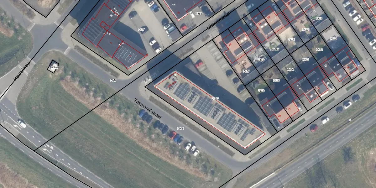 Het perceel waarop Midwaystraat 16-B staat heeft een oppervlakte van 1962 m². Dit is een zeer groot perceel. De perceeloppervlakte wordt geregistreerd door het Kadaster. Gedetailleerde informatie over de maten van dit perceel kunt u vinden in het rapport Kadastrale kaart met maatvoering van Midwaystraat 16-B.