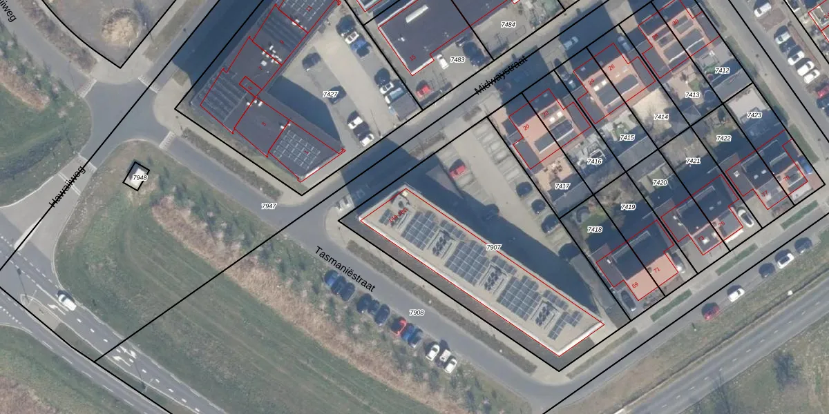 Het perceel waarop Midwaystraat 18-A staat heeft een oppervlakte van 1962 m². Dit is een zeer groot perceel. De perceeloppervlakte wordt geregistreerd door het Kadaster. Gedetailleerde informatie over de maten van dit perceel kunt u vinden in het rapport Kadastrale kaart met maatvoering van Midwaystraat 18-A.