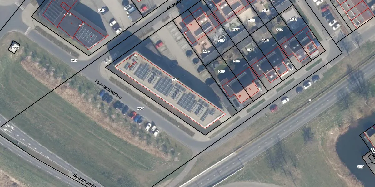 Het perceel waarop Midwaystraat 18-E staat heeft een oppervlakte van 1962 m². Dit is een zeer groot perceel. De perceeloppervlakte wordt geregistreerd door het Kadaster. Gedetailleerde informatie over de maten van dit perceel kunt u vinden in het rapport Kadastrale kaart met maatvoering van Midwaystraat 18-E.