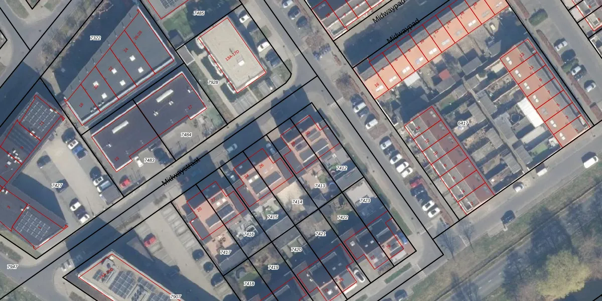 Het perceel waarop Midwaystraat 28 staat heeft een oppervlakte van 288 m². Dit is een middelgroot perceel. De perceeloppervlakte wordt geregistreerd door het Kadaster. Gedetailleerde informatie over de maten van dit perceel kunt u vinden in het rapport Kadastrale kaart met maatvoering van Midwaystraat 28.