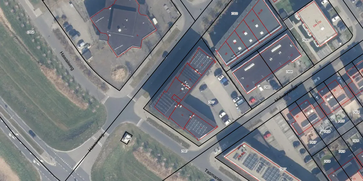 Het perceel waarop Midwaystraat 7 staat heeft een oppervlakte van 1804 m². Dit is een zeer groot perceel. De perceeloppervlakte wordt geregistreerd door het Kadaster. Gedetailleerde informatie over de maten van dit perceel kunt u vinden in het rapport Kadastrale kaart met maatvoering van Midwaystraat 7.