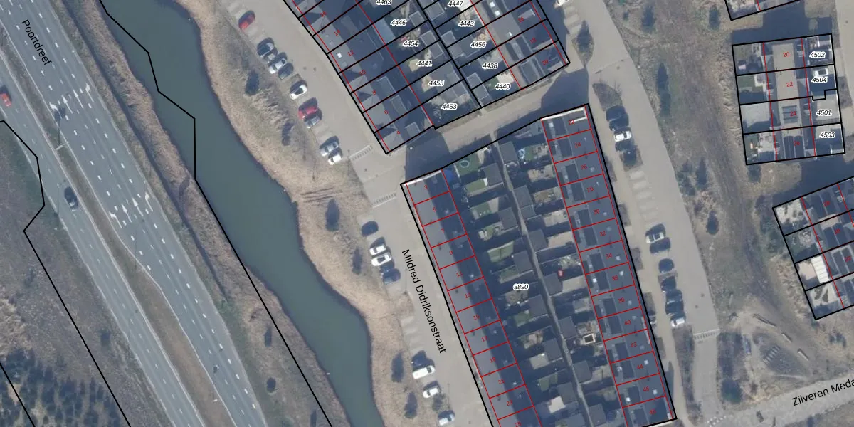 Mildred Didriksonstraat 5 is gelegen op kadastraal perceel AMR04W3890. Deze kadastrale aanduiding is uniek en wordt gebruikt door het Kadaster om eigendomsrechten en andere zakelijke rechten vast te leggen. Het perceel maakt onderdeel uit van de kadastrale gemeente Almere.