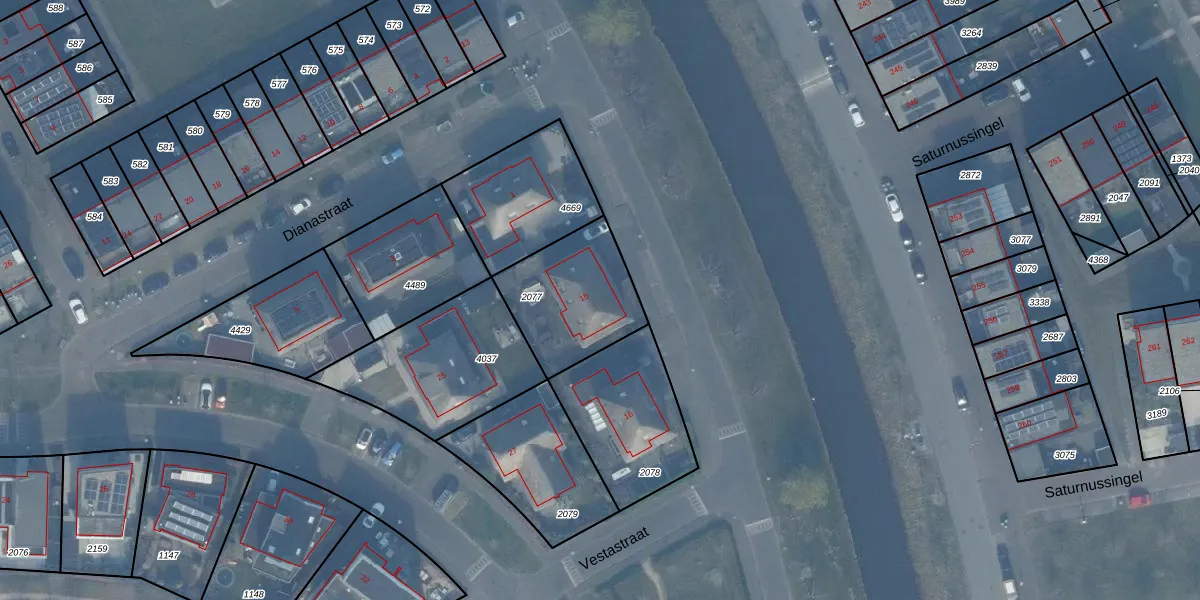 Minervasingel 15 is gelegen op kadastraal perceel AMR04W2077. Deze kadastrale aanduiding is uniek en wordt gebruikt door het Kadaster om eigendomsrechten en andere zakelijke rechten vast te leggen. Het perceel maakt onderdeel uit van de kadastrale gemeente Almere.