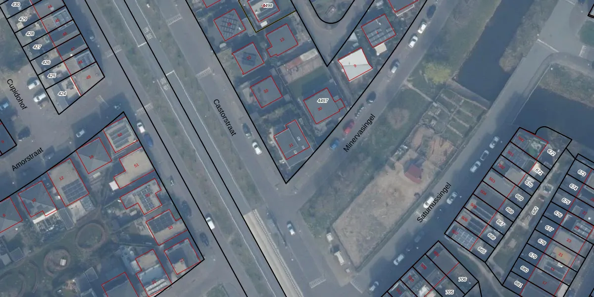 Minervasingel 31 is gelegen op kadastraal perceel AMR04W4497. Deze kadastrale aanduiding is uniek en wordt gebruikt door het Kadaster om eigendomsrechten en andere zakelijke rechten vast te leggen. Het perceel maakt onderdeel uit van de kadastrale gemeente Almere.