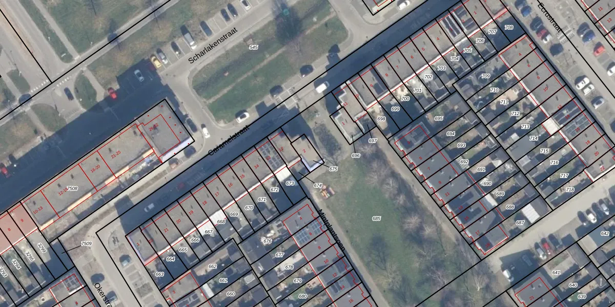 Het perceel waarop het adres ligt is AMR04-B-675. De afkorting 'AMR04' staat voor kadastrale gemeente Almere. Het perceel is kleiner dan gemiddeld in Almere. Het perceel is 63 m² groot, terwijl het gemiddelde ligt op 3329,36 m². Het kleinste perceel in de kadastrale gemeente is 0 m² groot. De grootste perceeloppervlakte is 32,12 km². Op het perceel bevinden zich geen andere adressen. De laatste wijziging in het de Basisregistratie Kadaster (BRK) was op 20-08-1997.