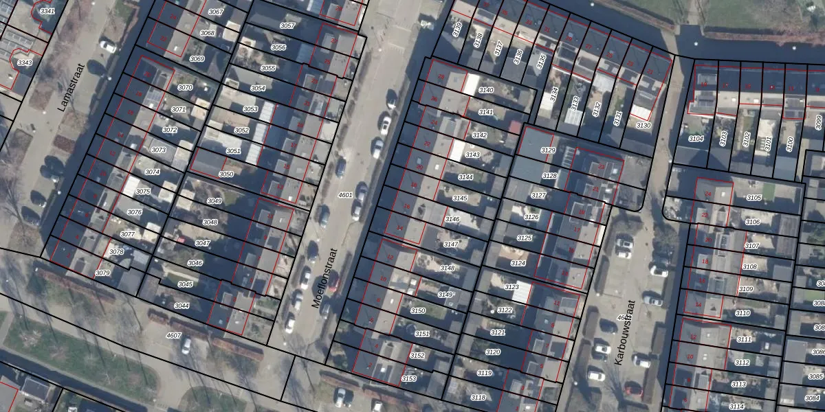 Gebruik de zoekbalk of klik op een perceel voor informatie over de adressen binnen dit perceel.
