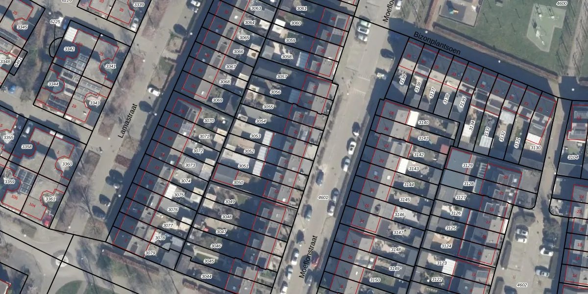 Moeflonstraat 19 is gelegen op kadastraal perceel AMR04N3053. Deze kadastrale aanduiding is uniek en wordt gebruikt door het Kadaster om eigendomsrechten en andere zakelijke rechten vast te leggen. Het perceel maakt onderdeel uit van de kadastrale gemeente Almere.