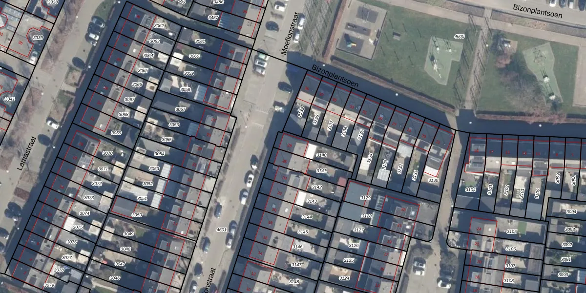 Het perceel waarop Moeflonstraat 28 staat heeft een oppervlakte van 179 m². Dit is een middelgroot perceel. De perceeloppervlakte wordt geregistreerd door het Kadaster. Gedetailleerde informatie over de maten van dit perceel kunt u vinden in het rapport Kadastrale kaart met maatvoering van Moeflonstraat 28.