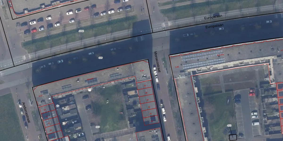 Het perceel waarop Monacostraat 22 staat heeft een oppervlakte van 1,2 ha. Dit is een zeer groot perceel. De perceeloppervlakte wordt geregistreerd door het Kadaster. Gedetailleerde informatie over de maten van dit perceel kunt u vinden in het rapport Kadastrale kaart met maatvoering van Monacostraat 22.