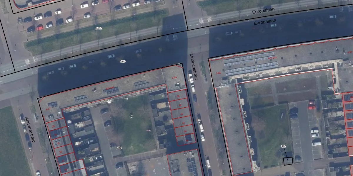 Het perceel waarop Monacostraat 34 staat heeft een oppervlakte van 1,2 ha. Dit is een zeer groot perceel. De perceeloppervlakte wordt geregistreerd door het Kadaster. Gedetailleerde informatie over de maten van dit perceel kunt u vinden in het rapport Kadastrale kaart met maatvoering van Monacostraat 34.