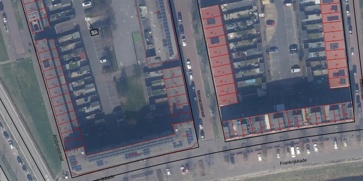 Het perceel waarop Monacostraat 68 staat heeft een oppervlakte van 1,2 ha. Dit is een zeer groot perceel. De perceeloppervlakte wordt geregistreerd door het Kadaster. Gedetailleerde informatie over de maten van dit perceel kunt u vinden in het rapport Kadastrale kaart met maatvoering van Monacostraat 68.