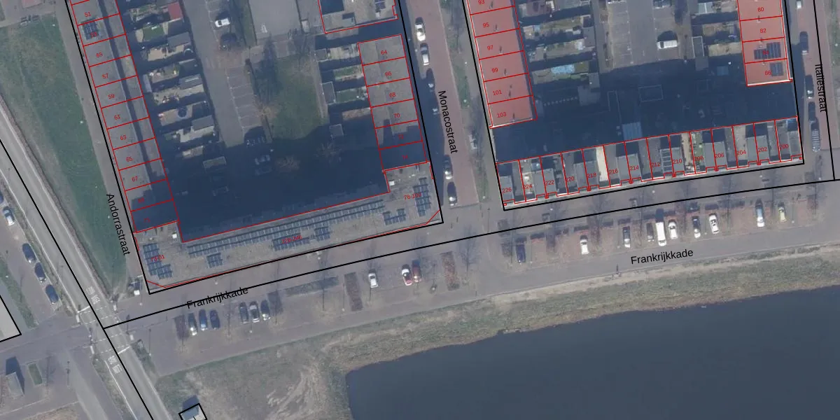 Het perceel waarop Monacostraat 78 staat heeft een oppervlakte van 1,2 ha. Dit is een zeer groot perceel. De perceeloppervlakte wordt geregistreerd door het Kadaster. Gedetailleerde informatie over de maten van dit perceel kunt u vinden in het rapport Kadastrale kaart met maatvoering van Monacostraat 78.