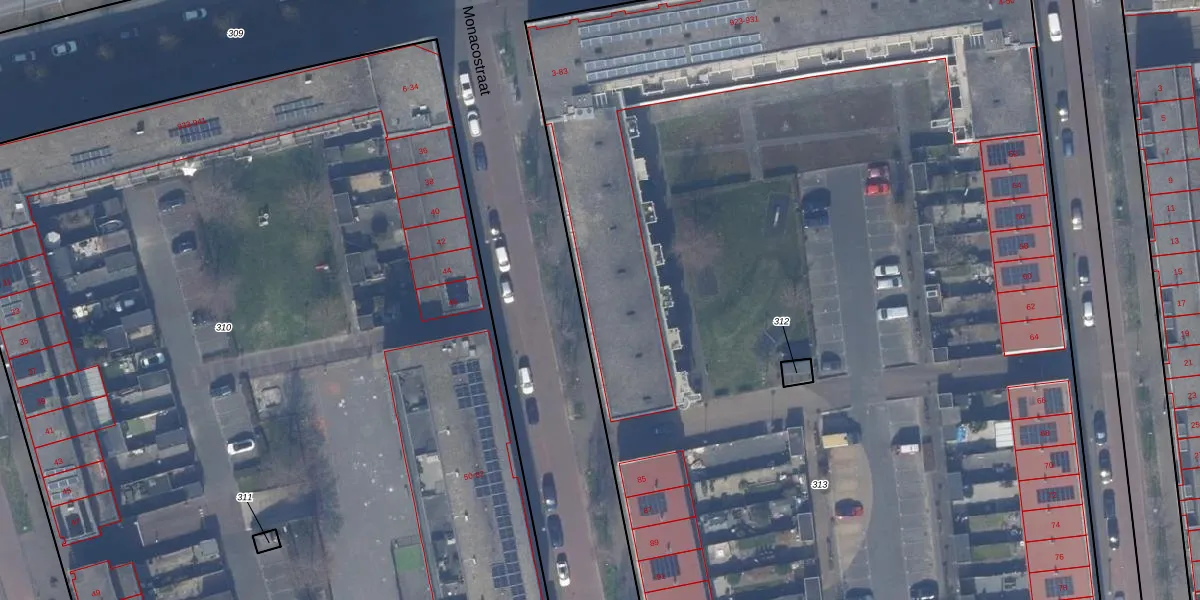 Het perceel waarop Monacostraat 79 staat heeft een oppervlakte van 1,2 ha. Dit is een zeer groot perceel. De perceeloppervlakte wordt geregistreerd door het Kadaster. Gedetailleerde informatie over de maten van dit perceel kunt u vinden in het rapport Kadastrale kaart met maatvoering van Monacostraat 79.