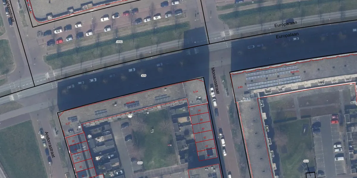 Het perceel waarop Monacostraat 8 staat heeft een oppervlakte van 1,2 ha. Dit is een zeer groot perceel. De perceeloppervlakte wordt geregistreerd door het Kadaster. Gedetailleerde informatie over de maten van dit perceel kunt u vinden in het rapport Kadastrale kaart met maatvoering van Monacostraat 8.