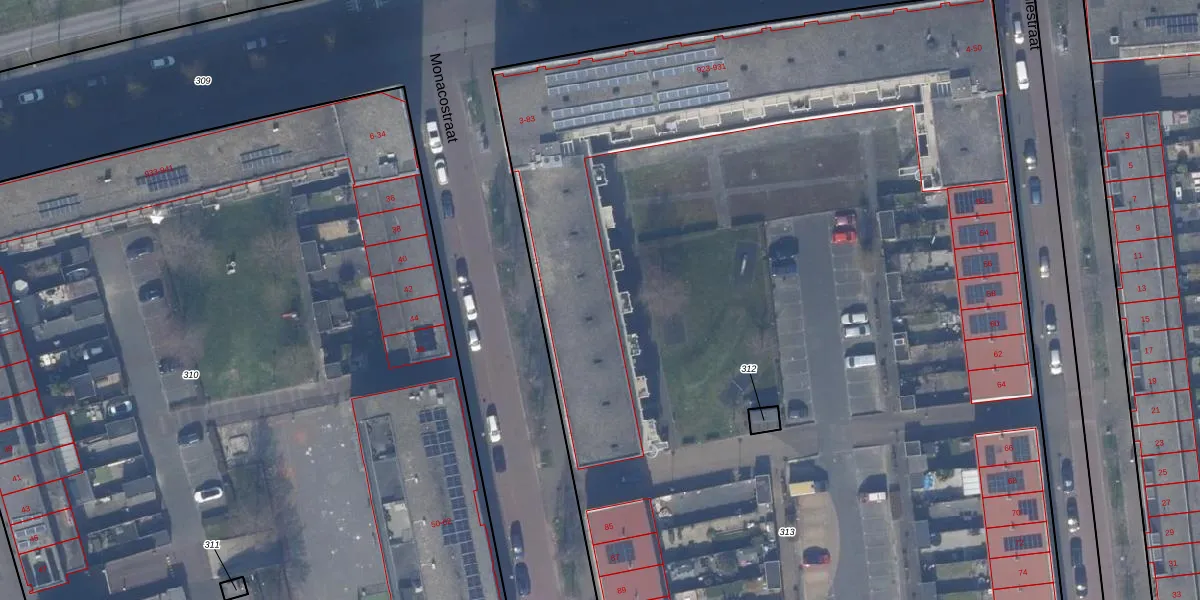 Het perceel waarop Monacostraat 9 staat heeft een oppervlakte van 1,2 ha. Dit is een zeer groot perceel. De perceeloppervlakte wordt geregistreerd door het Kadaster. Gedetailleerde informatie over de maten van dit perceel kunt u vinden in het rapport Kadastrale kaart met maatvoering van Monacostraat 9.