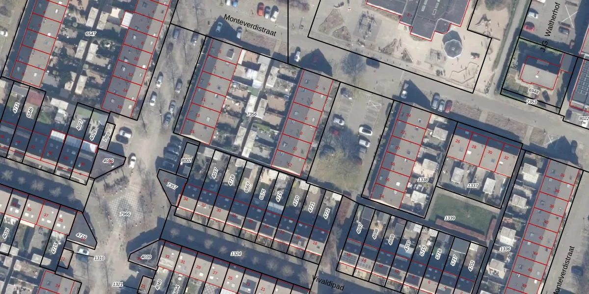 Het perceel waarop Monteverdistraat 10 staat heeft een oppervlakte van 1847 m². Dit is een zeer groot perceel. De perceeloppervlakte wordt geregistreerd door het Kadaster. Gedetailleerde informatie over de maten van dit perceel kunt u vinden in het rapport Kadastrale kaart met maatvoering van Monteverdistraat 10.