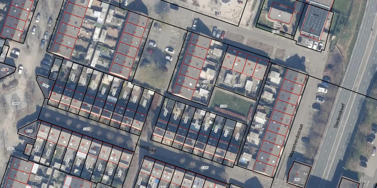 Monteverdistraat 14 is gelegen op kadastraal perceel AMR04K1338. Deze kadastrale aanduiding is uniek en wordt gebruikt door het Kadaster om eigendomsrechten en andere zakelijke rechten vast te leggen. Het perceel maakt onderdeel uit van de kadastrale gemeente Almere.