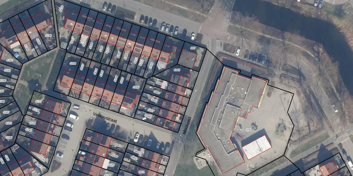Gebruik de zoekbalk of klik op een perceel voor informatie over de adressen binnen dit perceel.