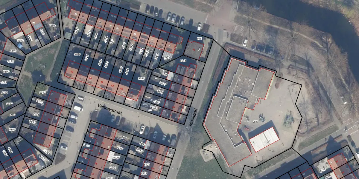 Gebruik de zoekbalk of klik op een perceel voor informatie over de adressen binnen dit perceel.