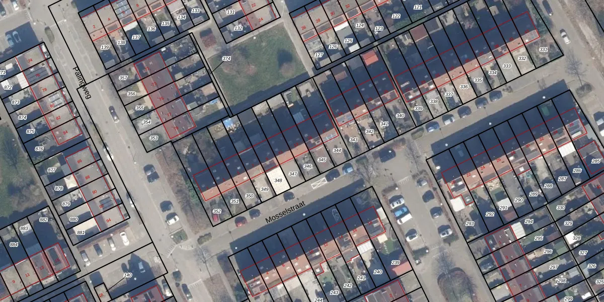 Het perceel waarop Mosselstraat 13 staat heeft een oppervlakte van 162 m². Dit is een middelgroot perceel. De perceeloppervlakte wordt geregistreerd door het Kadaster. Gedetailleerde informatie over de maten van dit perceel kunt u vinden in het rapport Kadastrale kaart met maatvoering van Mosselstraat 13.