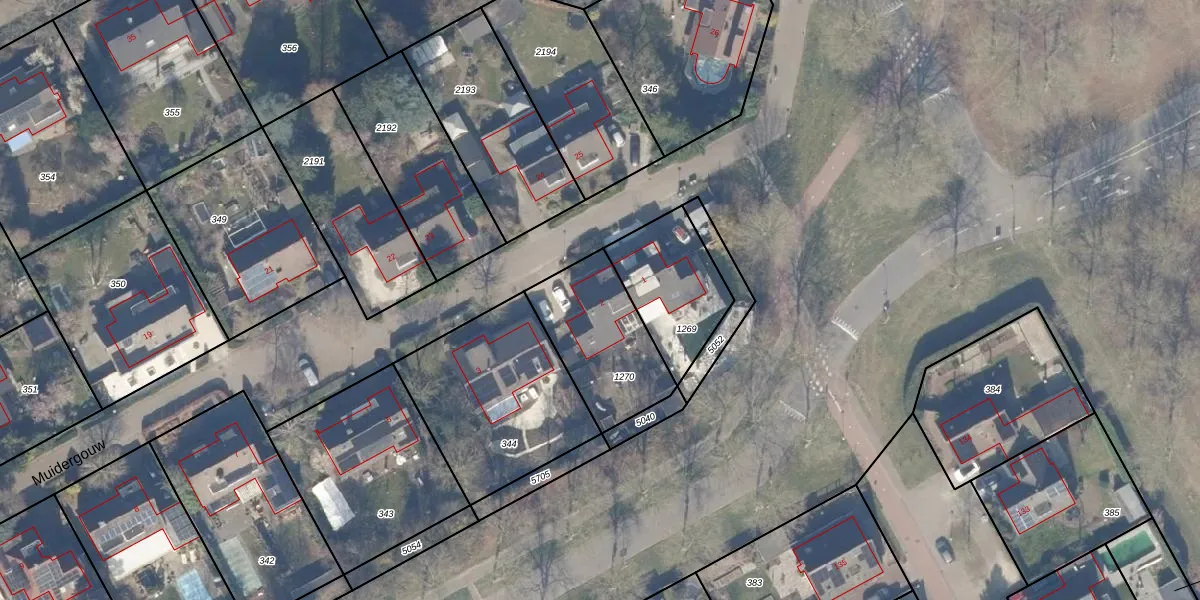 Het perceel waarop Muidergouw 2 staat heeft een oppervlakte van 404 m². Dit is een groot perceel. De perceeloppervlakte wordt geregistreerd door het Kadaster. Gedetailleerde informatie over de maten van dit perceel kunt u vinden in het rapport Kadastrale kaart met maatvoering van Muidergouw 2.