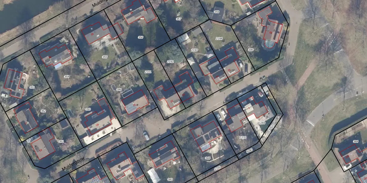 Het perceel waarop Muidergouw 23 staat heeft een oppervlakte van 482 m². Dit is een groot perceel. De perceeloppervlakte wordt geregistreerd door het Kadaster. Gedetailleerde informatie over de maten van dit perceel kunt u vinden in het rapport Kadastrale kaart met maatvoering van Muidergouw 23.