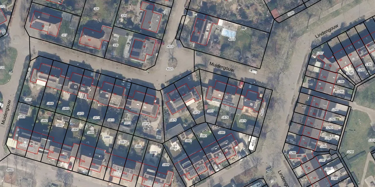 Het perceel waarop Muidergouw 54 staat heeft een oppervlakte van 268 m². Dit is een middelgroot perceel. De perceeloppervlakte wordt geregistreerd door het Kadaster. Gedetailleerde informatie over de maten van dit perceel kunt u vinden in het rapport Kadastrale kaart met maatvoering van Muidergouw 54.