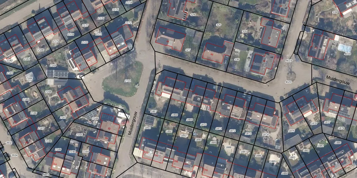 Het perceel waarop Muidergouw 62 staat heeft een oppervlakte van 232 m². Dit is een middelgroot perceel. De perceeloppervlakte wordt geregistreerd door het Kadaster. Gedetailleerde informatie over de maten van dit perceel kunt u vinden in het rapport Kadastrale kaart met maatvoering van Muidergouw 62.