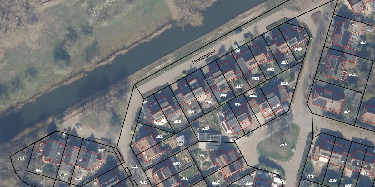 Het perceel waarop Muidergouw 79 staat heeft een oppervlakte van 214 m². Dit is een middelgroot perceel. De perceeloppervlakte wordt geregistreerd door het Kadaster. Gedetailleerde informatie over de maten van dit perceel kunt u vinden in het rapport Kadastrale kaart met maatvoering van Muidergouw 79.