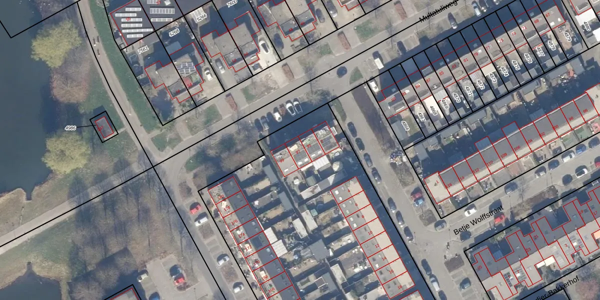Multatuliweg 97 is gelegen op kadastraal perceel AMR04Q4933. Deze kadastrale aanduiding is uniek en wordt gebruikt door het Kadaster om eigendomsrechten en andere zakelijke rechten vast te leggen. Het perceel maakt onderdeel uit van de kadastrale gemeente Almere.