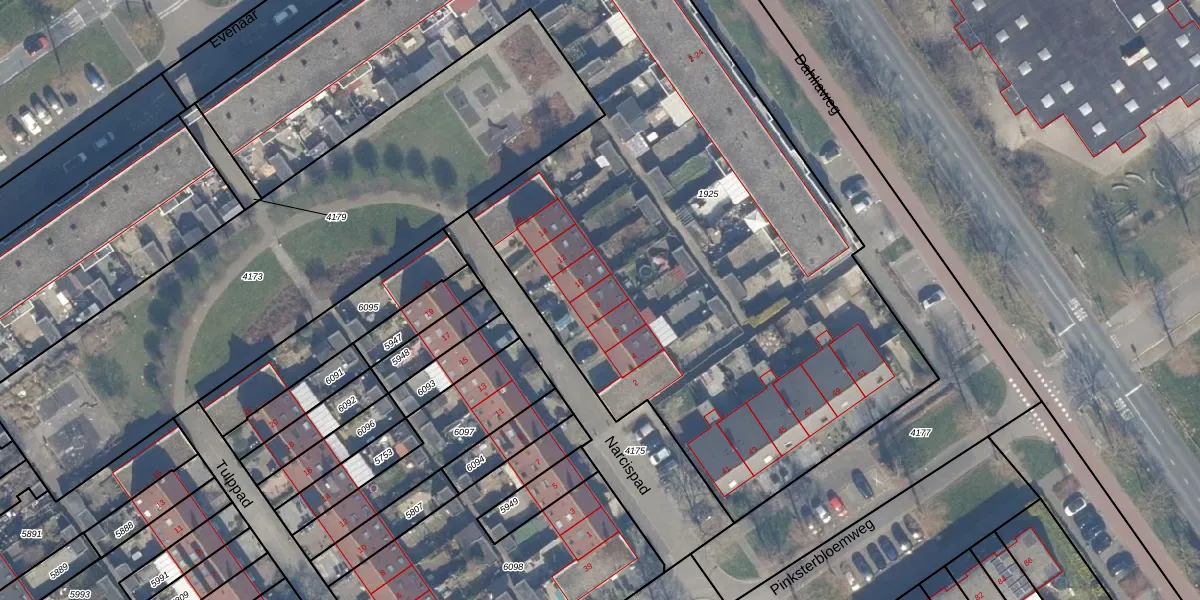 Het perceel waarop Narcispad 8 staat heeft een oppervlakte van 5188 m². Dit is een zeer groot perceel. De perceeloppervlakte wordt geregistreerd door het Kadaster. Gedetailleerde informatie over de maten van dit perceel kunt u vinden in het rapport Kadastrale kaart met maatvoering van Narcispad 8.