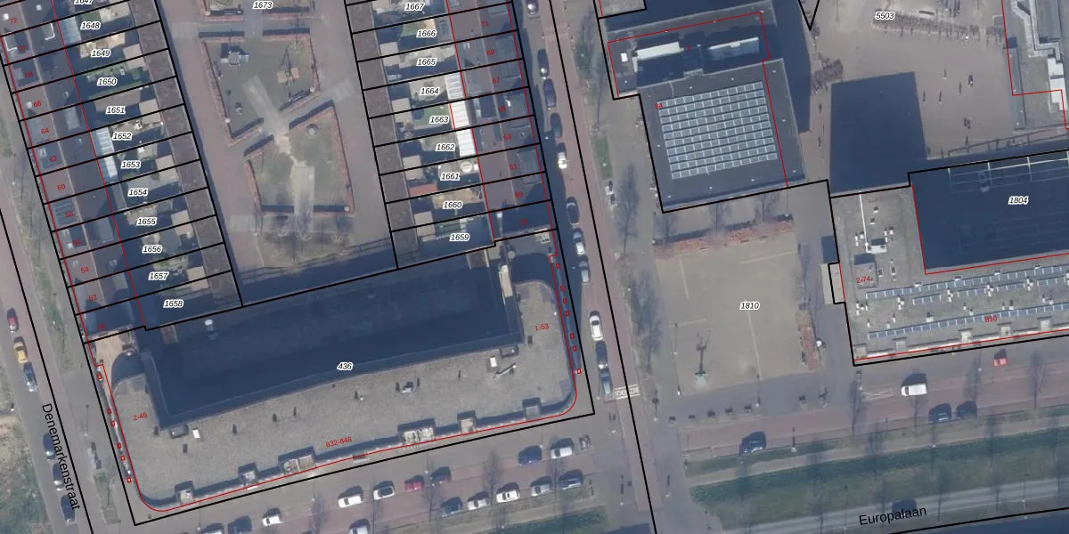 Het adres is gelegen op perceel 436 in de sectie W en de kadastrale gemeente Almere. De kadastrale aanduiding is aldus AMR04-W-436. Het perceel is 3108 m² groot. Dat is kleiner dan de gemiddelde perceeloppervlakte in Almere, dat op 3327,75 m² ligt. Het grootste perceel in de kadastrale gemeente is 32,12 km². Het kleinste perceel heeft een oppervlakte van 0 m². Er zijn 59 adressen aanwezig op het perceel. De huidige grenzen van het perceel zijn digitaal in de Basisregistratie Kadaster (BRK) geregistreerd op 17-10-2013.
